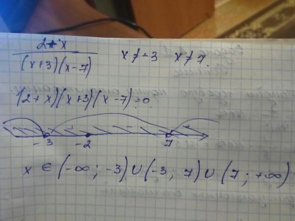 Ответ:самое простое решение. перемножаем числитель на знаменатель, выкалываем точки, которые обращают знаменатель в нуль, как знаем знаменатель не должен равняться 0, получаем промежутки, этим промежуткам принадлежит х!