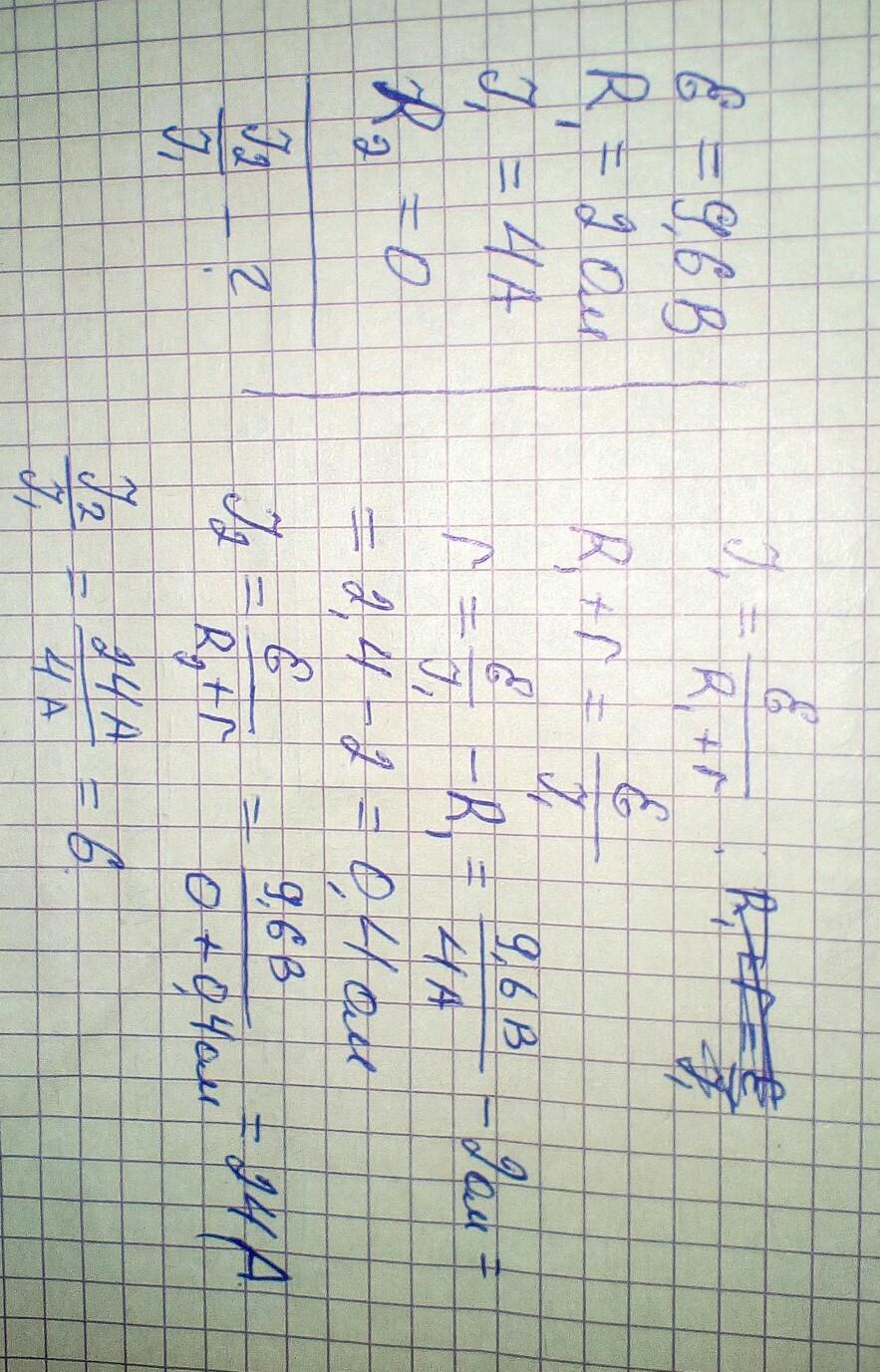 В цепи источника тока, ЭДС которого составляет 9.6 В, через резистор с сопротивлением R=2 Ом течет ток I=4A. Во сколько раз ток короткого замыкания в этой цепи больше данного значения тока?