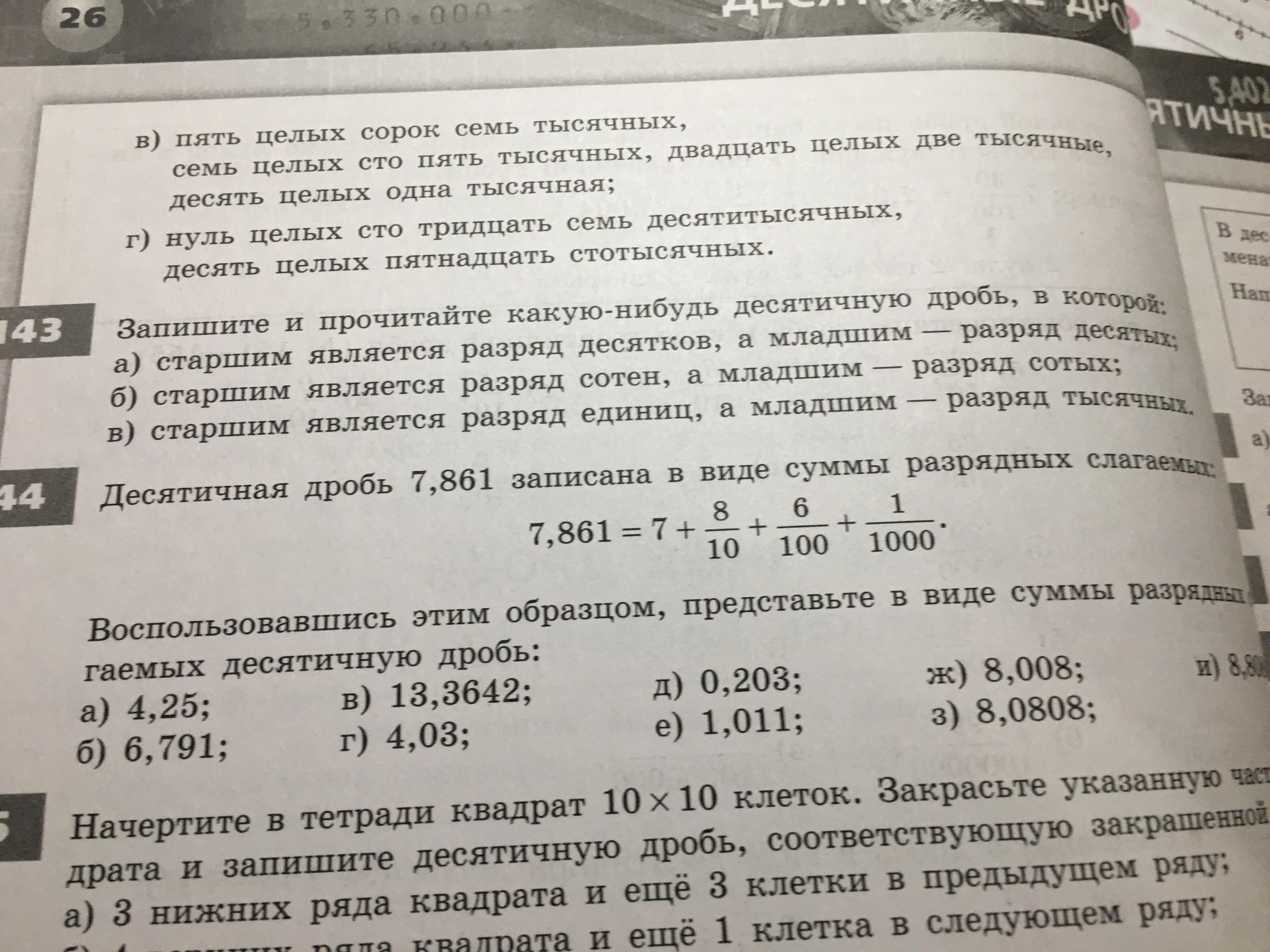 в) 1,234 одна целая, двести тридцать четыре тысячных