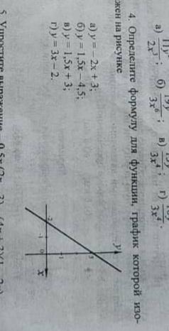 График функции убывает, значит коэффициент отрицательный. График пересекает ось Х в точке - 2, поэтому формула графика функции у=-2х+3