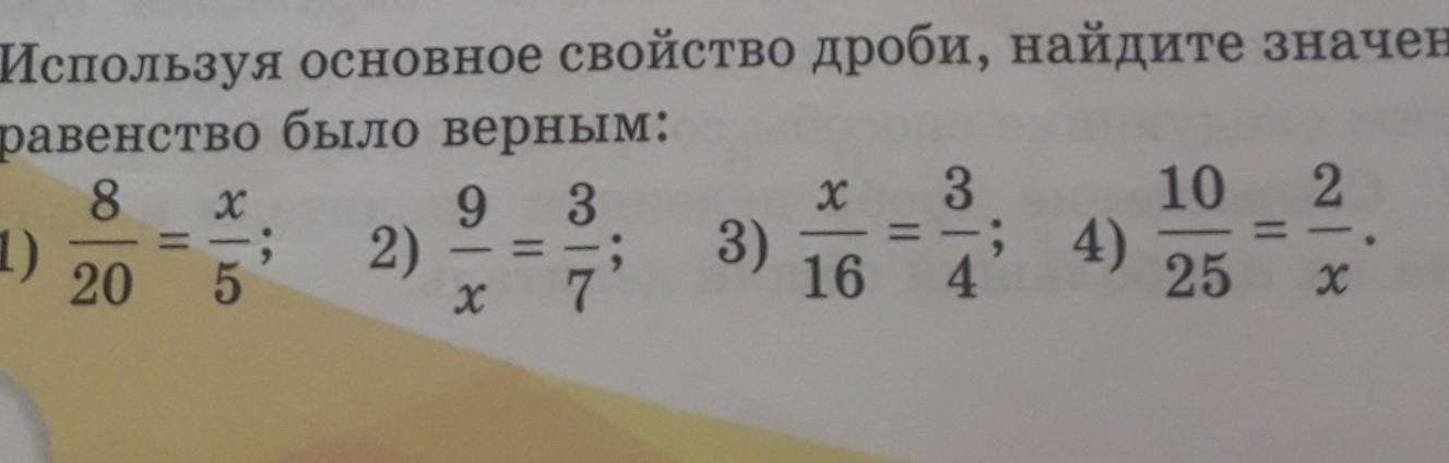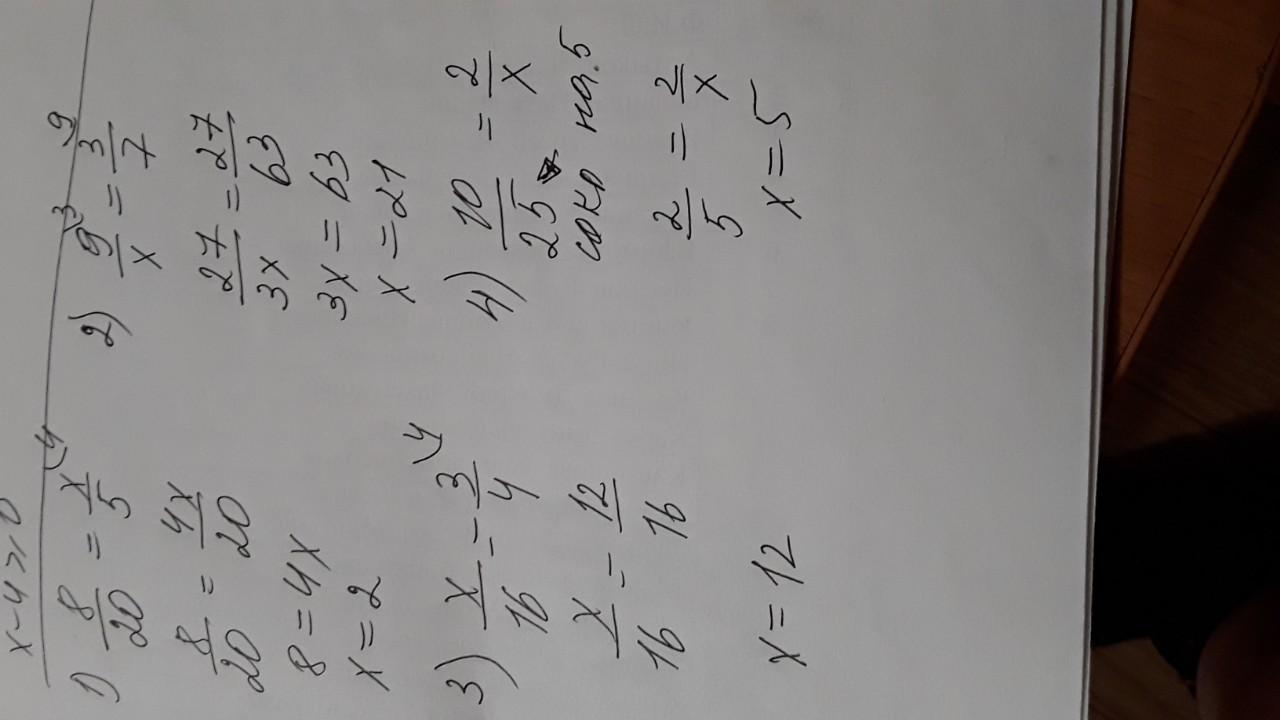 Второй способ: 8/20 = х/5; 8/20 = 4•х/4•5; 8/20 = 4•х/20; тогда 8=4х; х=2.