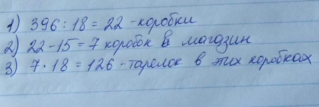 396 тарелок положили в коробки по 18 шт. (396/18 = 22(коробки с тарелками))