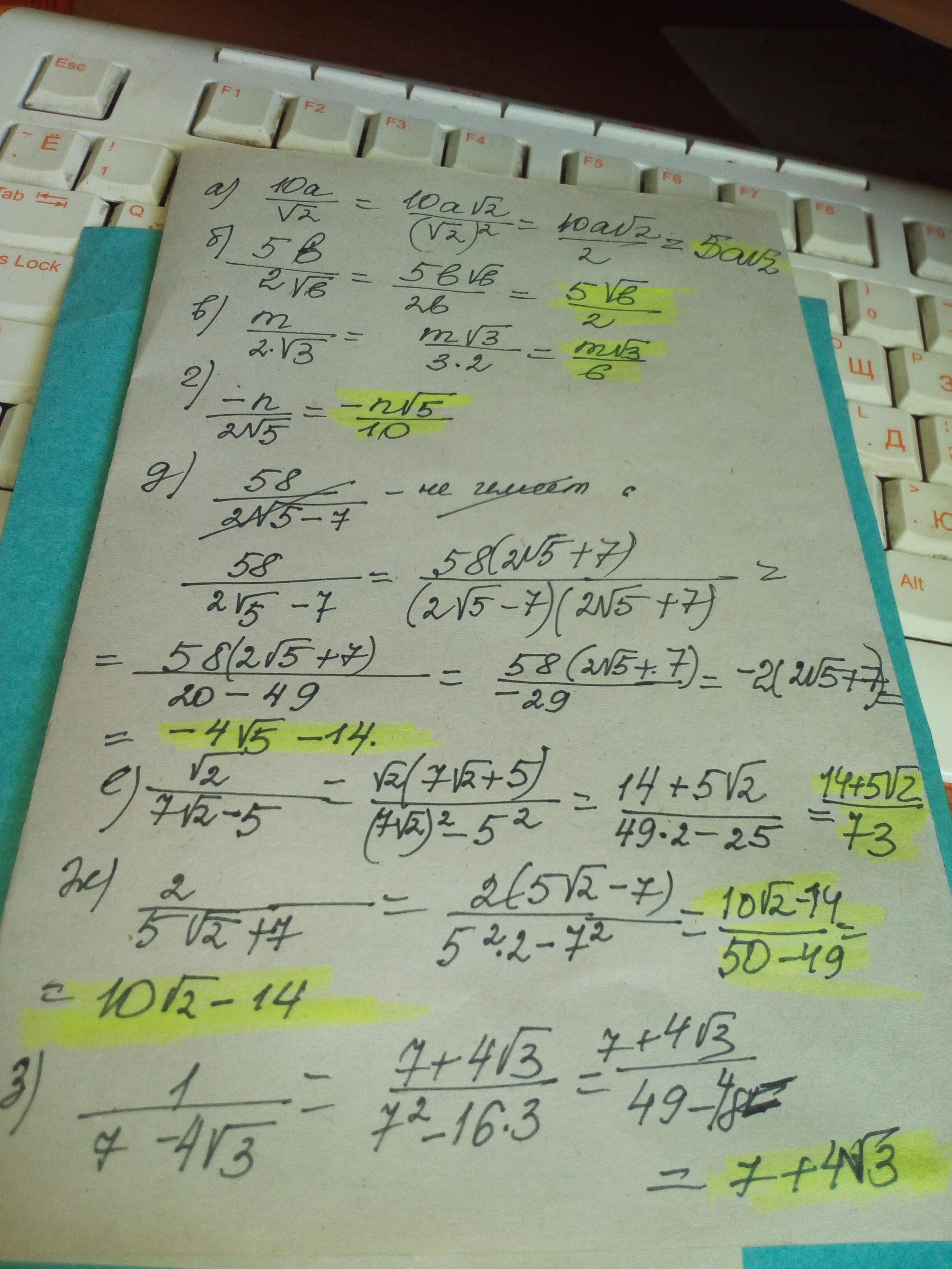 Просто умножь и числитель и знаменатель каждой дроби на значение под корнем