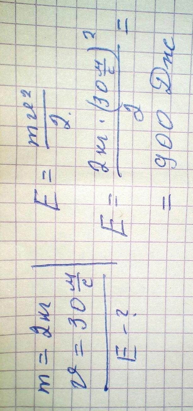 Масса тела 2 кг. Скорость движения тела 30 м/с. Найдите энергию тела.