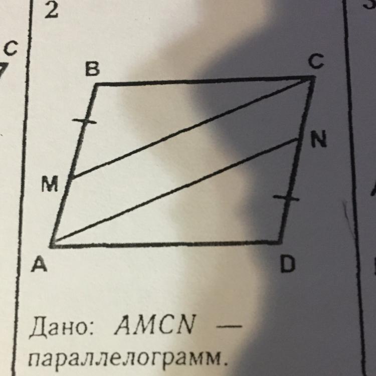 Так как DM=MB, тогда АМ=СN, так как АВ=СD