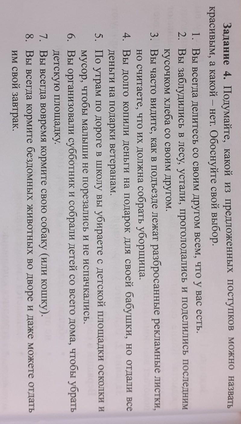 (Объяснение: мы ищем ни правильный и неправильный поступок, а именно красивый, по этому эти варианты ответа верны.)