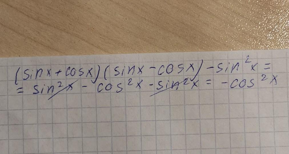 Применили формулу разности квадратов и сложили подобные. Синус квадрат икс самоуничтожился.