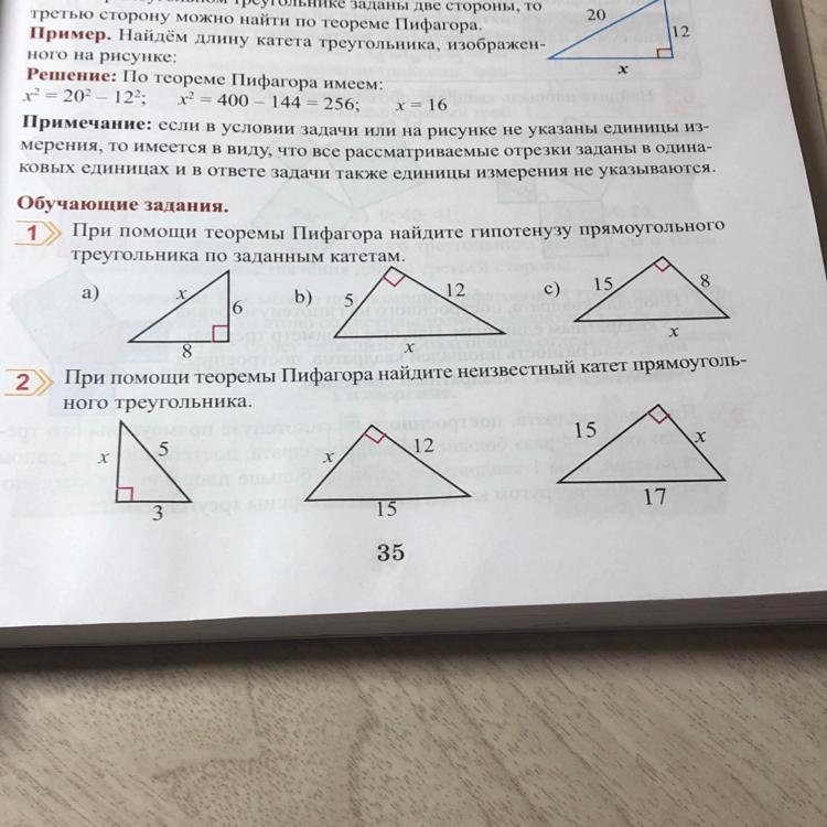 2) При помощи теоремы Пифагора найдите неизвестный катет прямоуголь-