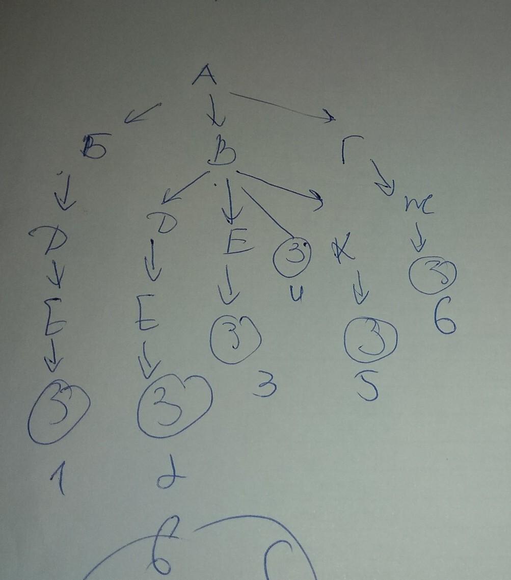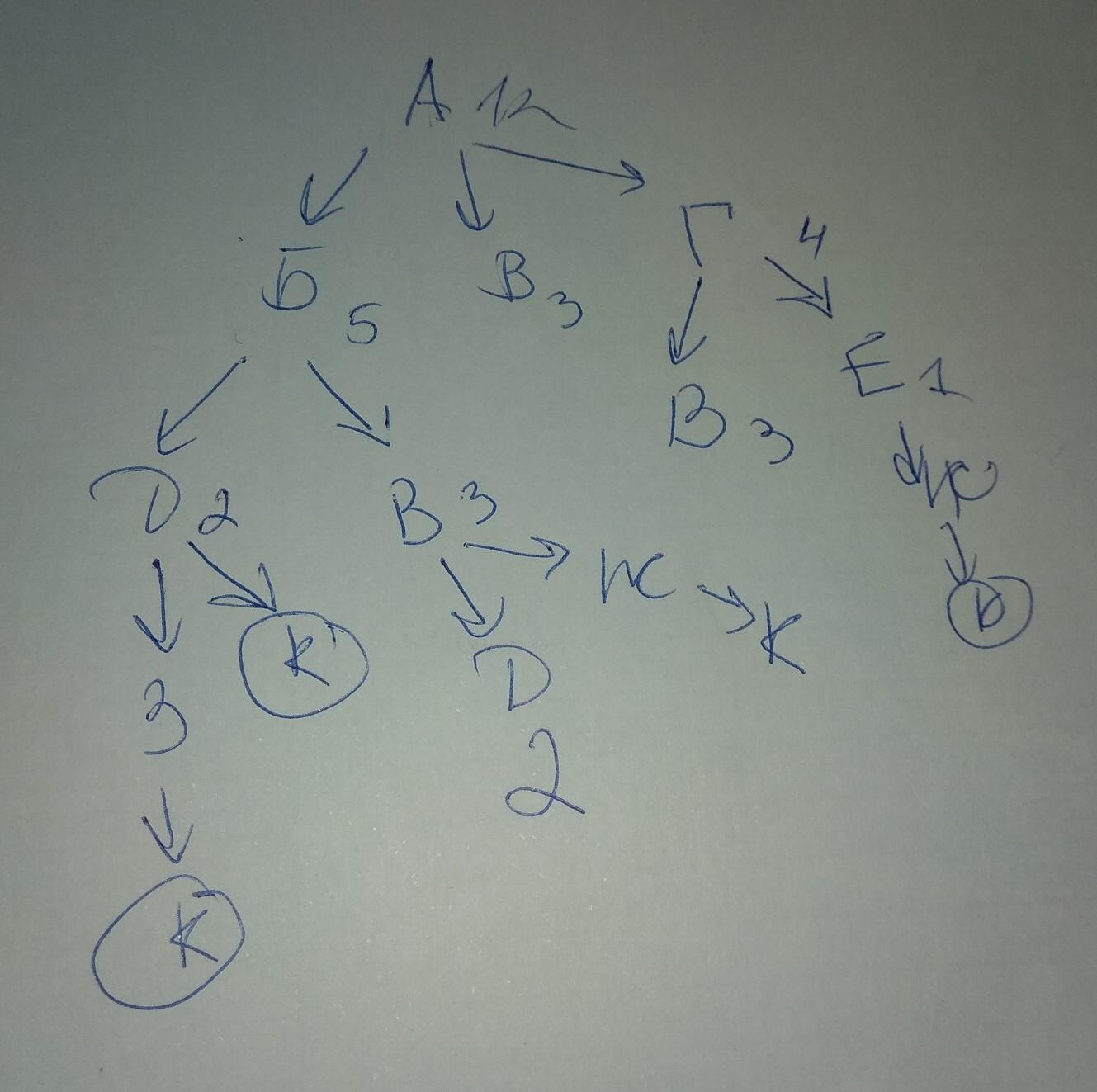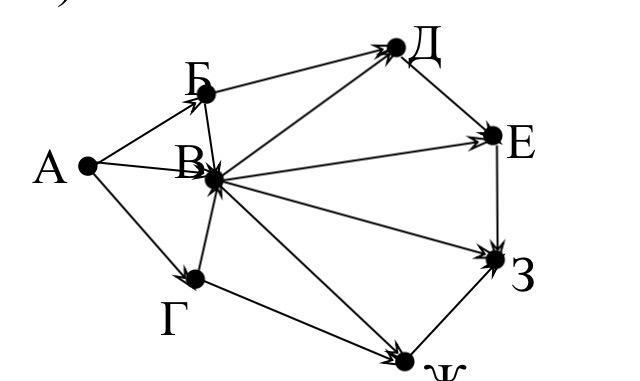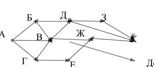 На рисунке – схема дорог, связывающих города А, Б, В, Г, Д, Е, Ж, З (К). По каждой дороге можно двигаться только в одном направлении, указанном стрелкой. Сколько существует различных путей из города а) А в город З? б) А в К?