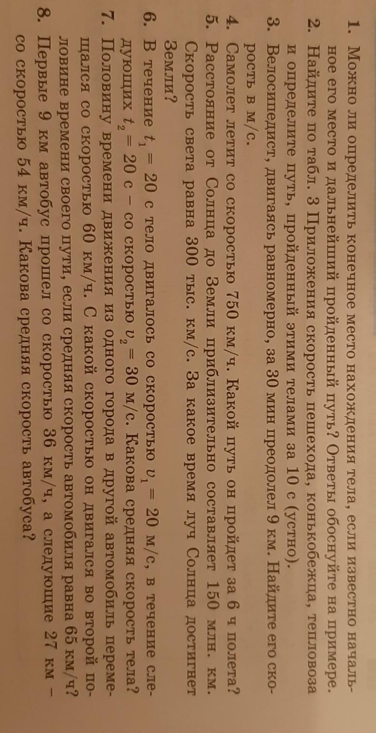 номер 3: v=s/t , переводим 30 мин в секунды - 1800 с, 9 км = 9000 м. v=9000/1800=5 /с