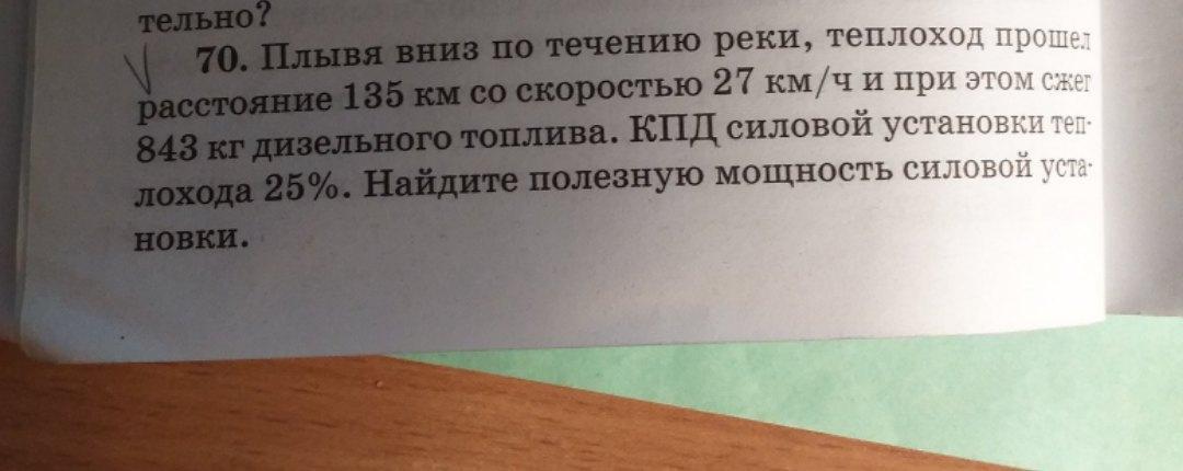 Pполезн=Aполезн/t=nAqmv/s=0.25*42.7e+6*843*7.5/1.35e+5=5e+5 Вт=500 кВт,