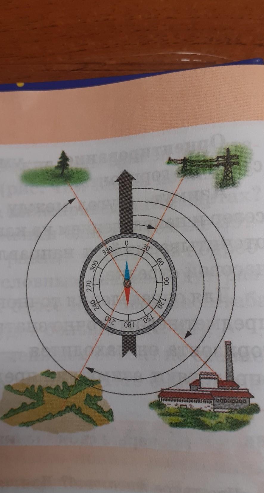 Просто запиши цифры указанные на которые показывает линия:завод 145’, леп 30’, перекрёсток 210’, дерево 330’. Азимут-угол между севером и объектом.