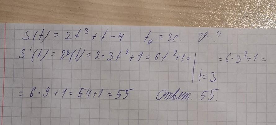 Скорость тела в момент времени t = 3 c: