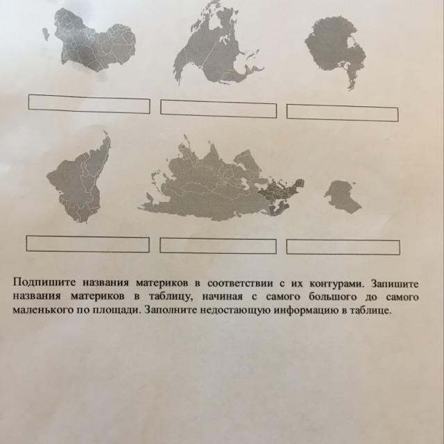 Ответ: 1-Африка 2-Северная Америка 3-Антарктида 4-Южная Америка 5-Евразия 6-Австралия