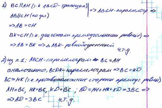 На рисунке ABCD — трапеция, ВСКН — прямоугольник, его диагонали параллельны боковым сторонам трапеции.