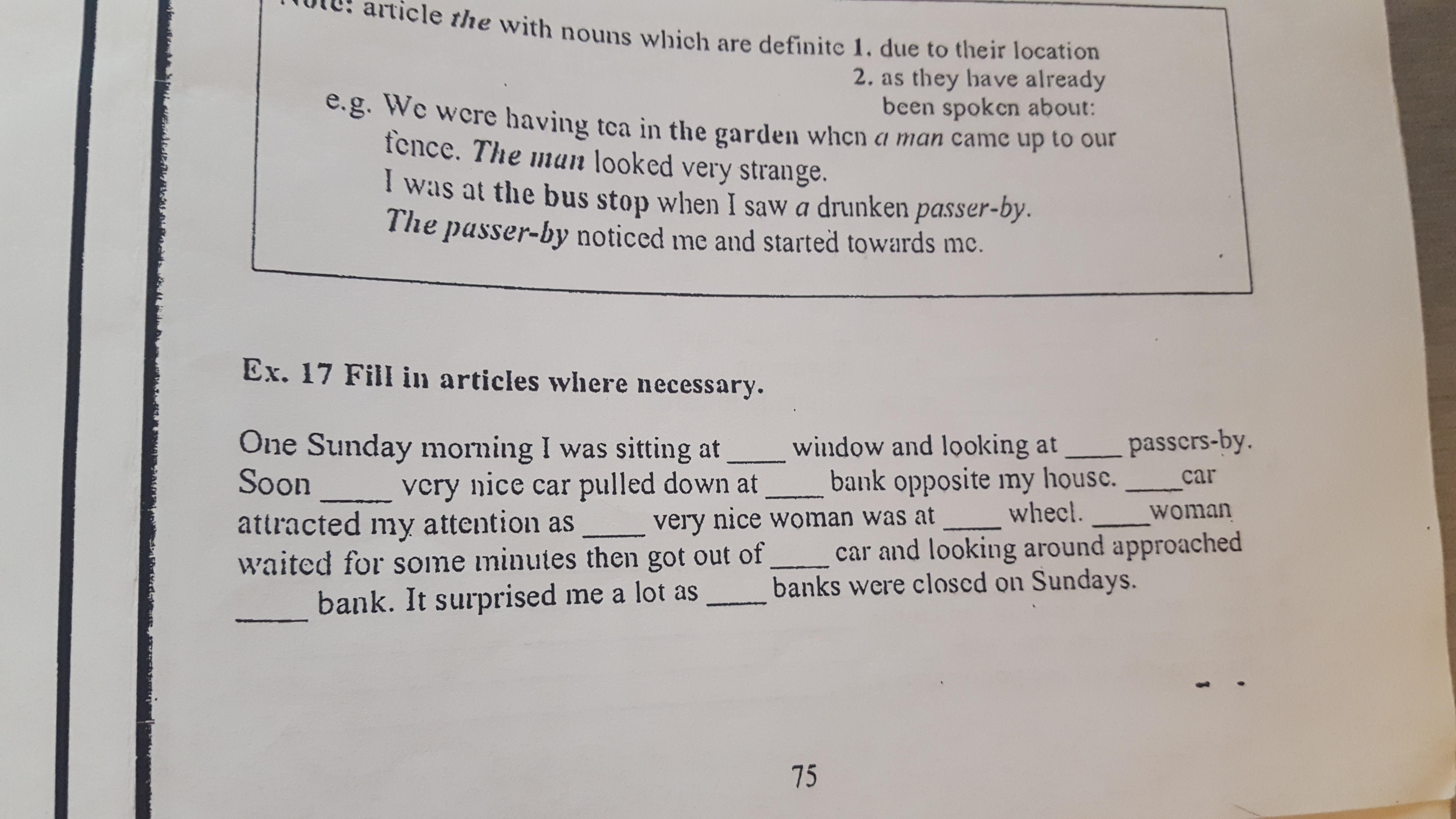 Насколько я понял, то тут просто во всех пропусках написать "the" (без кавычек).