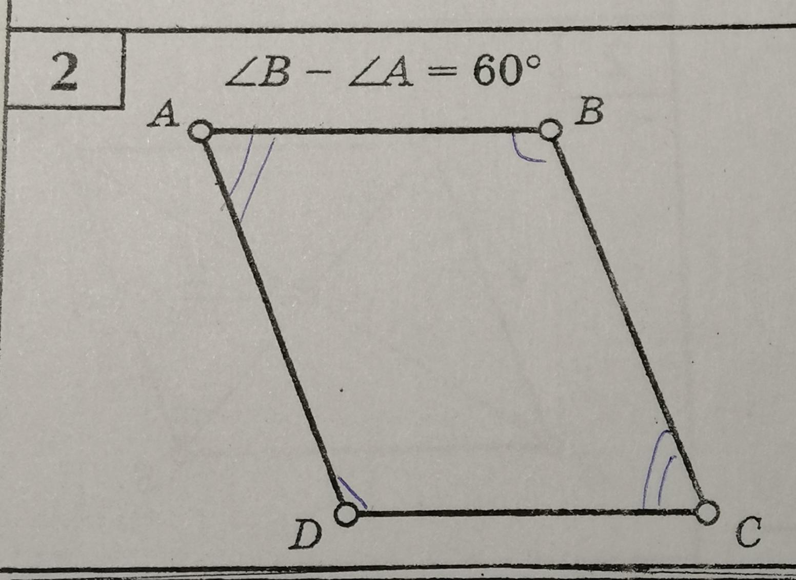 Найти все углы параллелограмма. ПОМОГИТЕ!!1! Номер 2. угол B - угол A = 60° ABCD параллелограмм