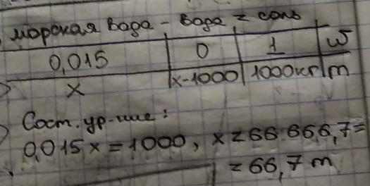 Морскую соль добывают выпариванием из воды Черного моря. Какая масса морской воды, содержащей 1.5% солей, нужно для получения 1т морской соли?