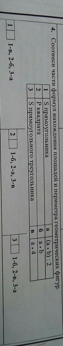 Соотнеси части формул нахождения площадей и периметра геометрических фигур