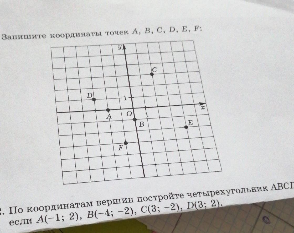 A (-2;0), B (0;-1), C (2; 3), D (-3;1), E ( 4;-2), F (-1;-3).