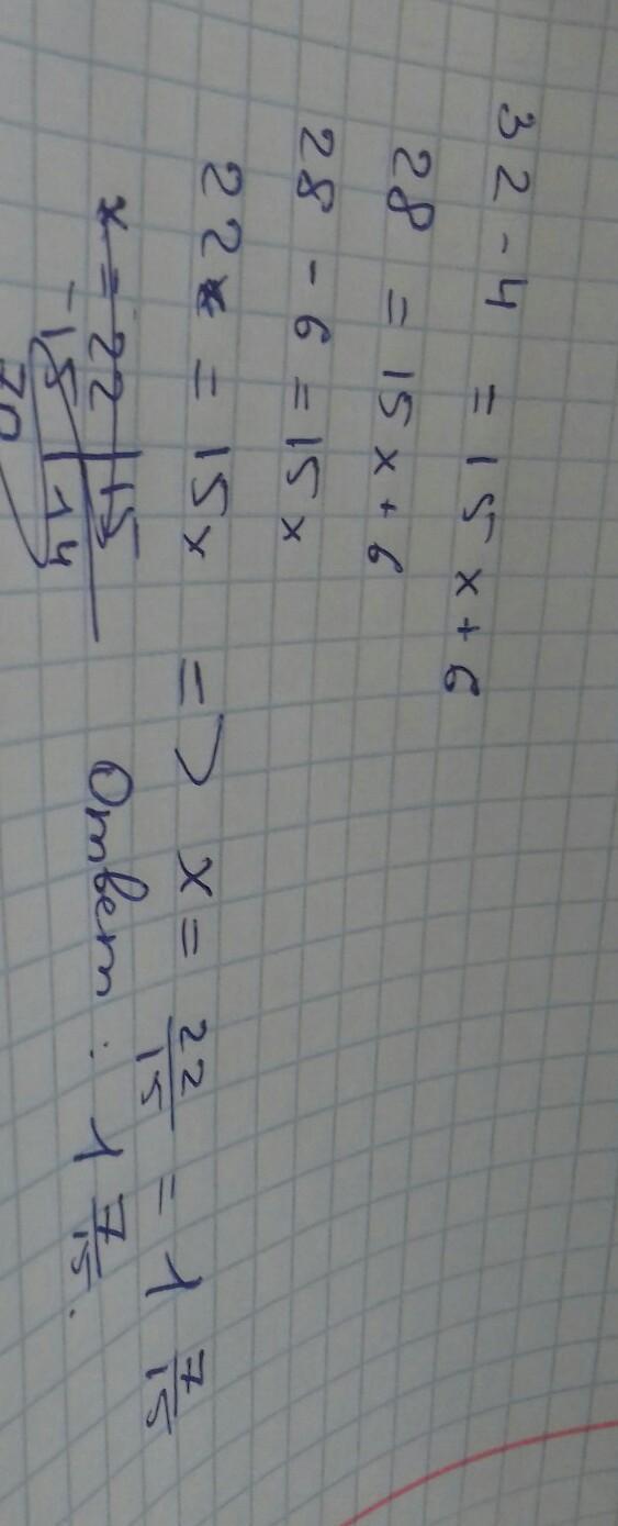 При каких значениях переменной х значение выражения 32 - 4 и 15х + 6 равны?