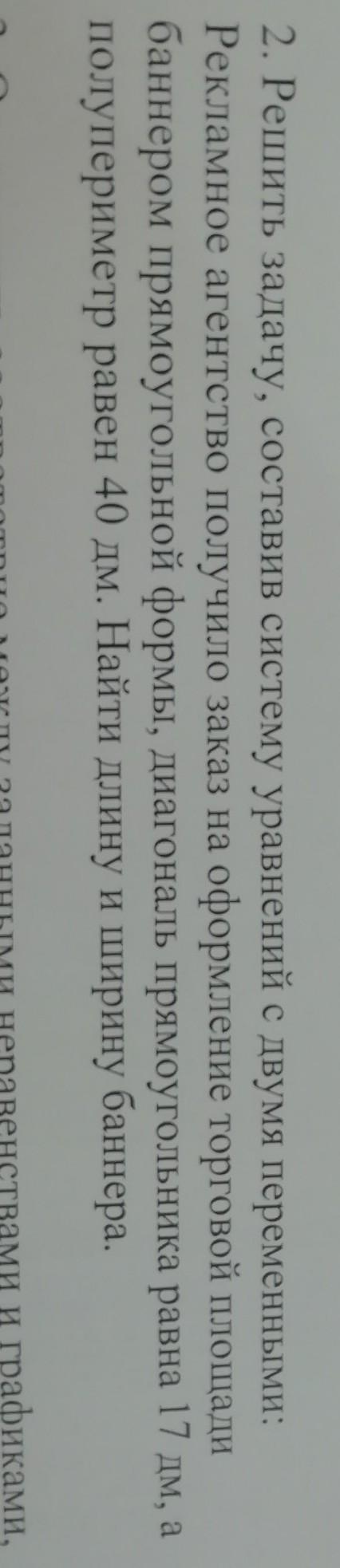 2. РЕШИТЬ ЗАДАЧУ, СОСТАВИВ СИСТЕМУ УРАВНЕНИЙ С ДВУМЯ ПЕРЕМЕННЫМИ:
