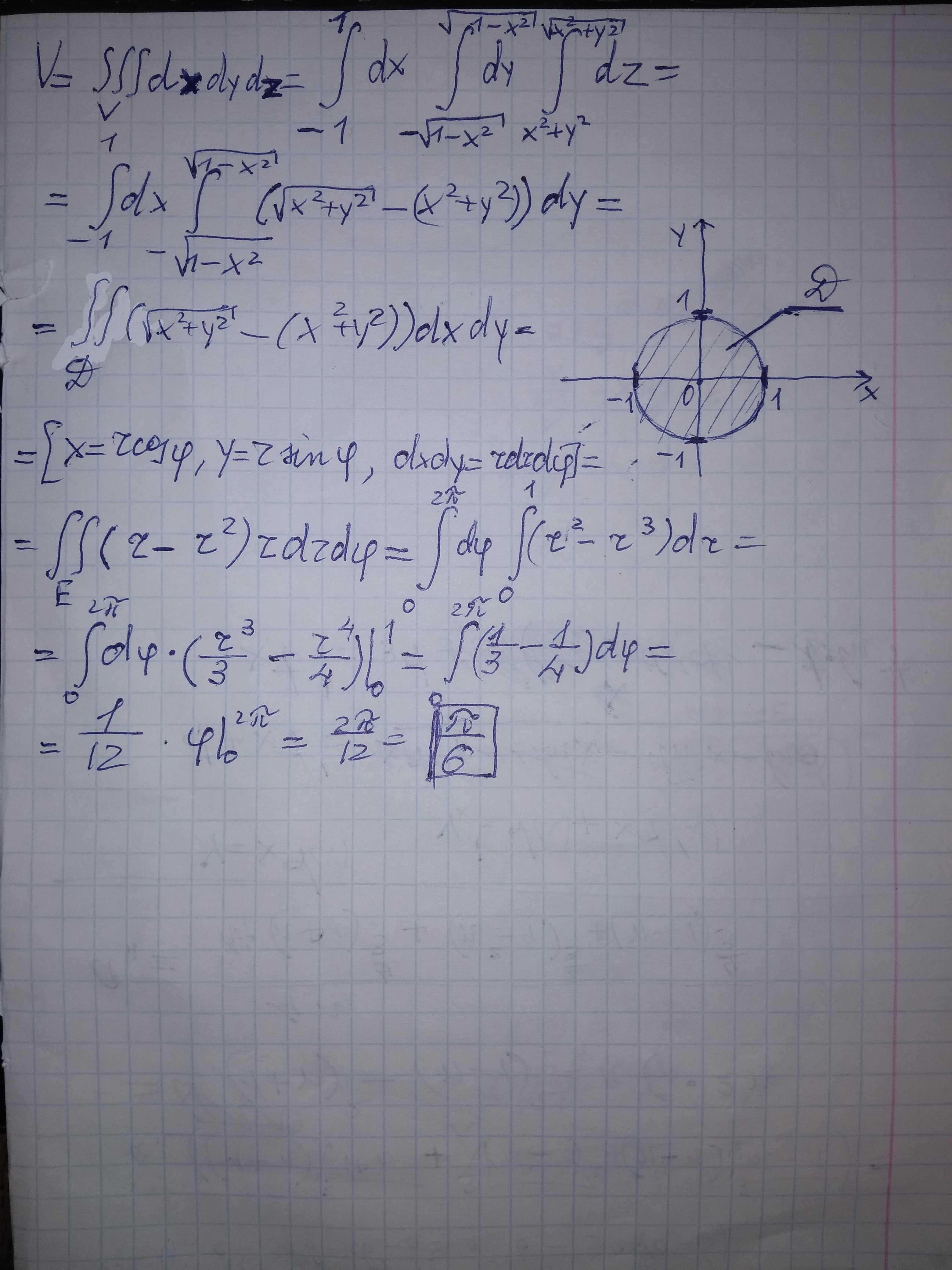 Найдите объем тела, ограниченного поверхностями, заданными уравнениями