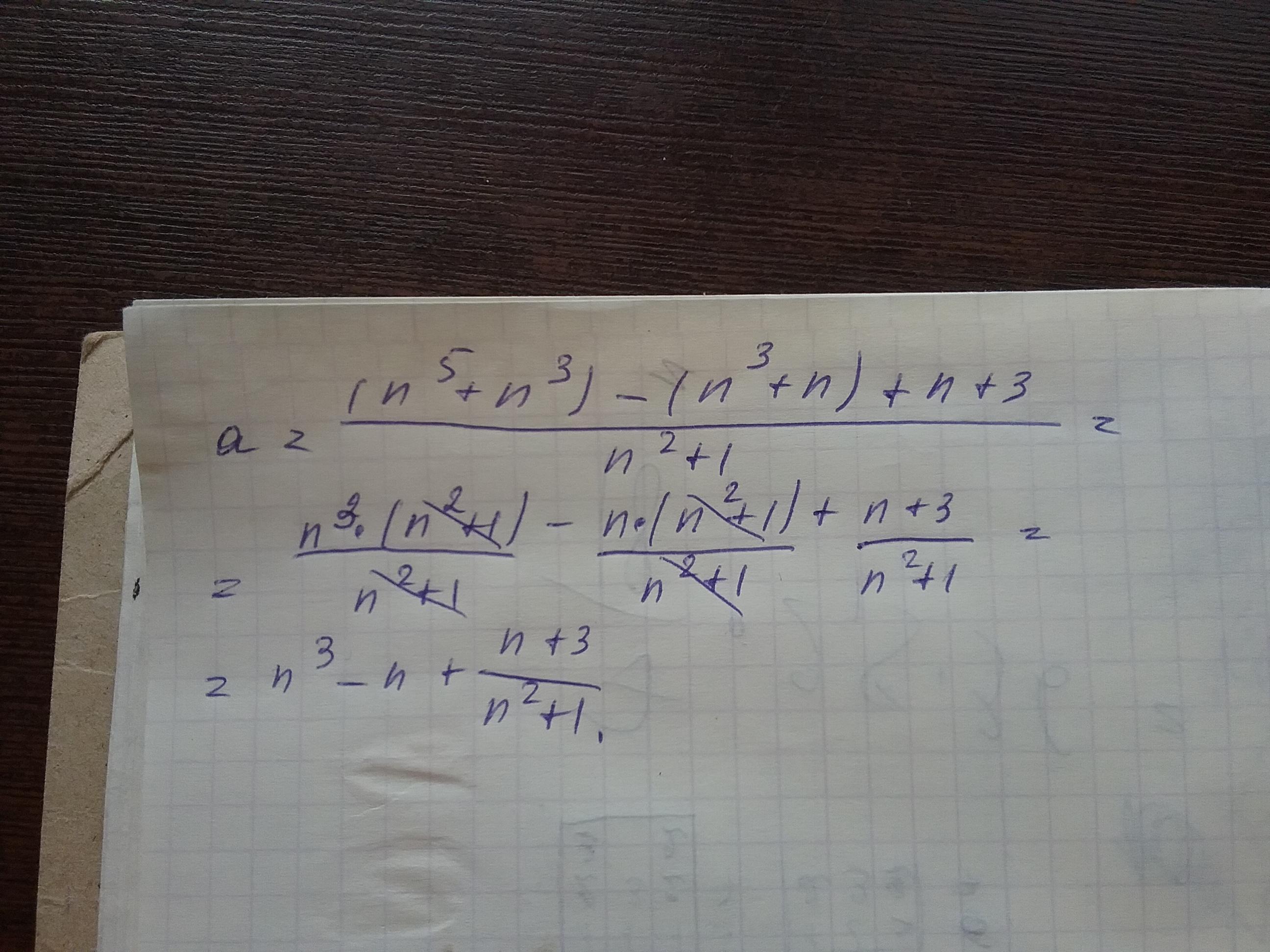 n в 3степени выносится за скобки в первой дроби, n выносится за скобки во второй дроби. Далее сокращаем