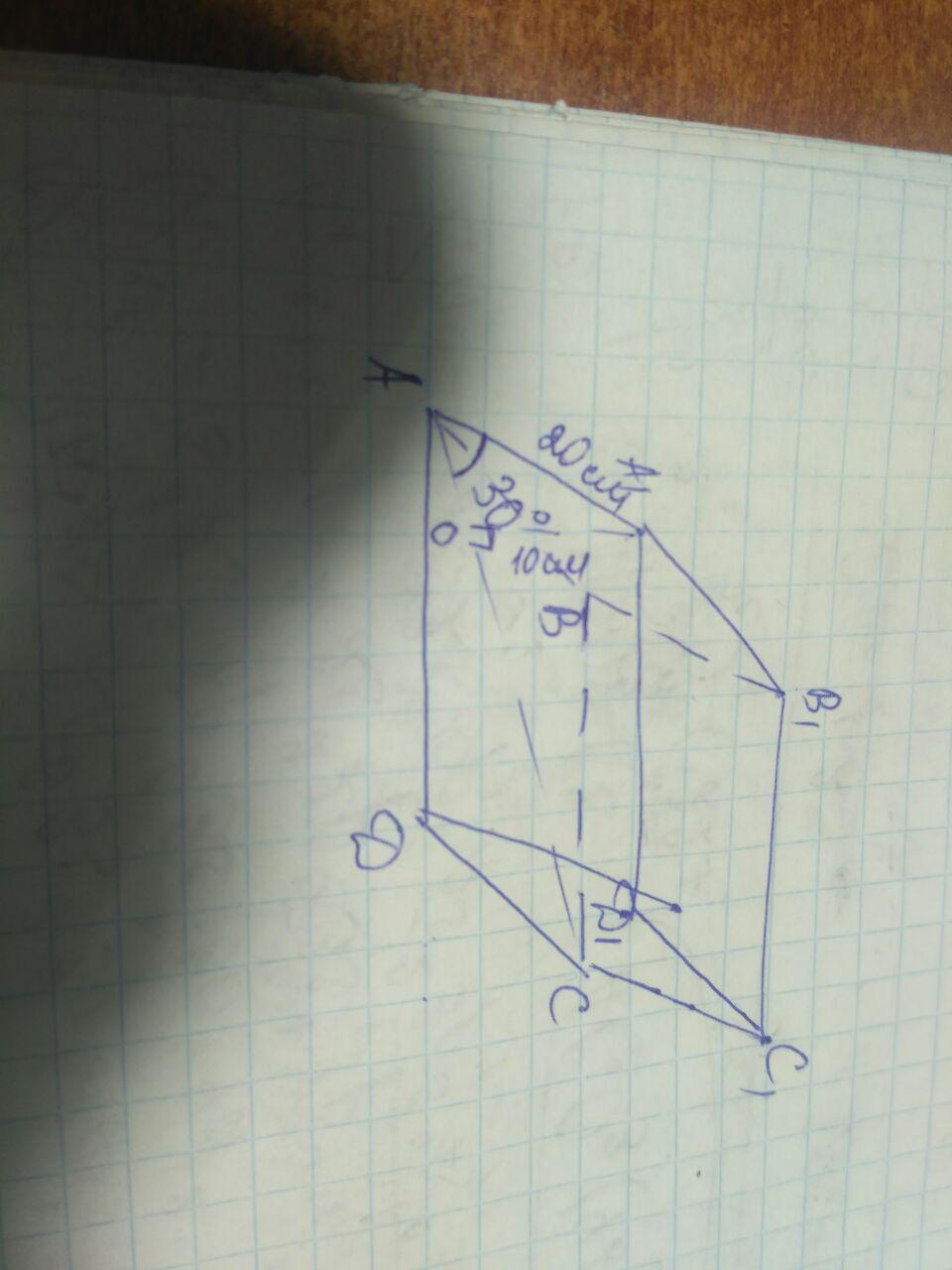 Кут між бічним ребром і площиною основи похилої призми дорівнює 30°, висота призми дорівнює 10 см . Знайдіть бічне ребро призми