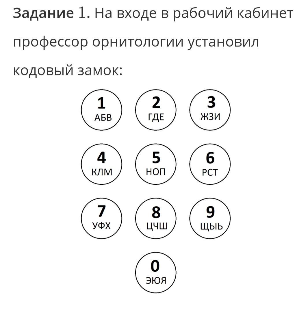 На входе в рабочий кабинет профессор орнитологии установил кодовый замок: