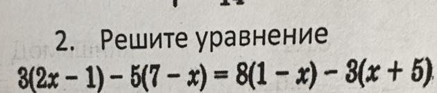 Объяснение: 3(2x-1)-5(7-x)=8(1-x)-3(x+5)