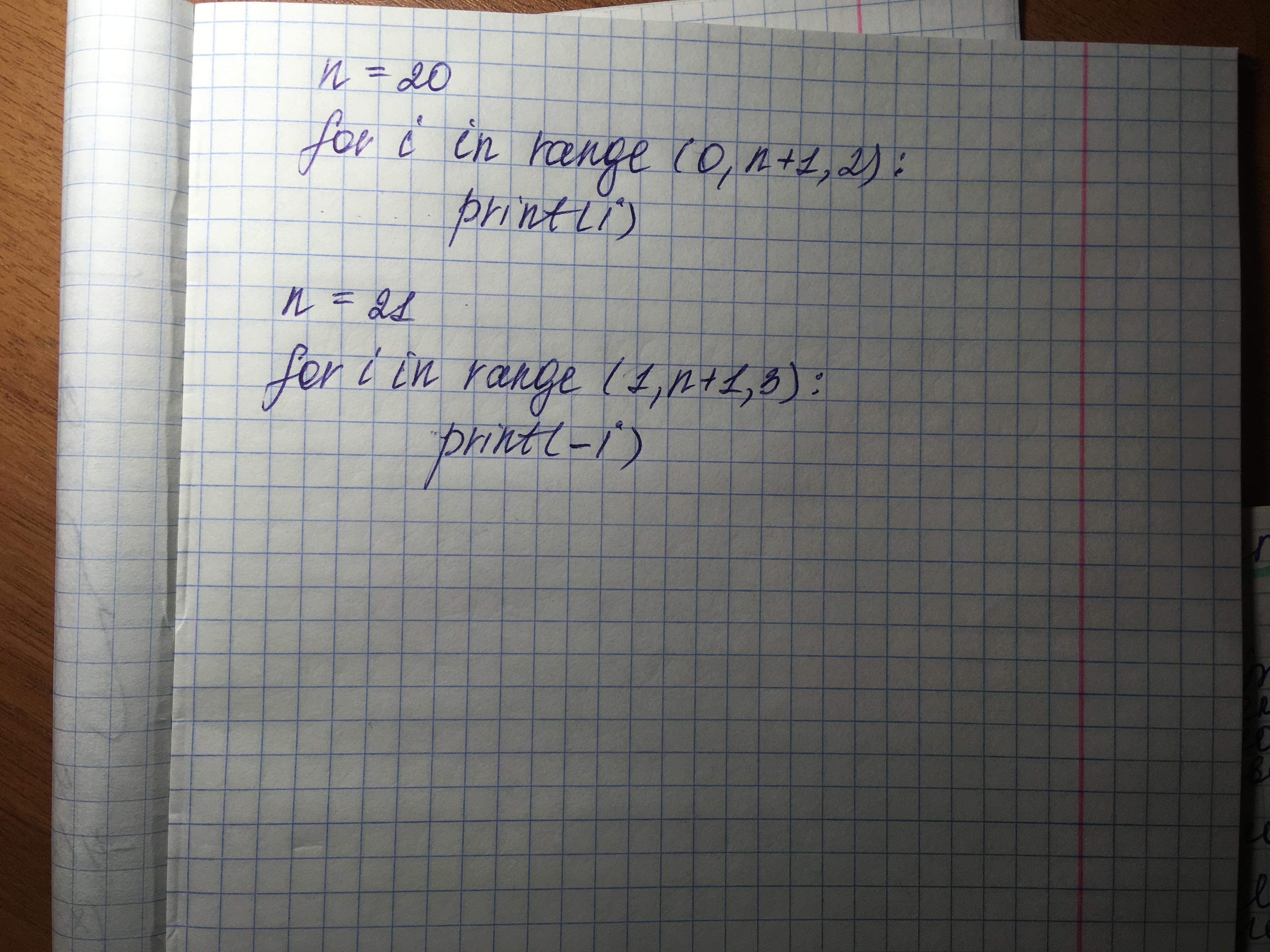 Написать цикл, который выводит ряд четных чисел от 0 до 20. Затем, каждое третье число в ряду от -1 до -21.