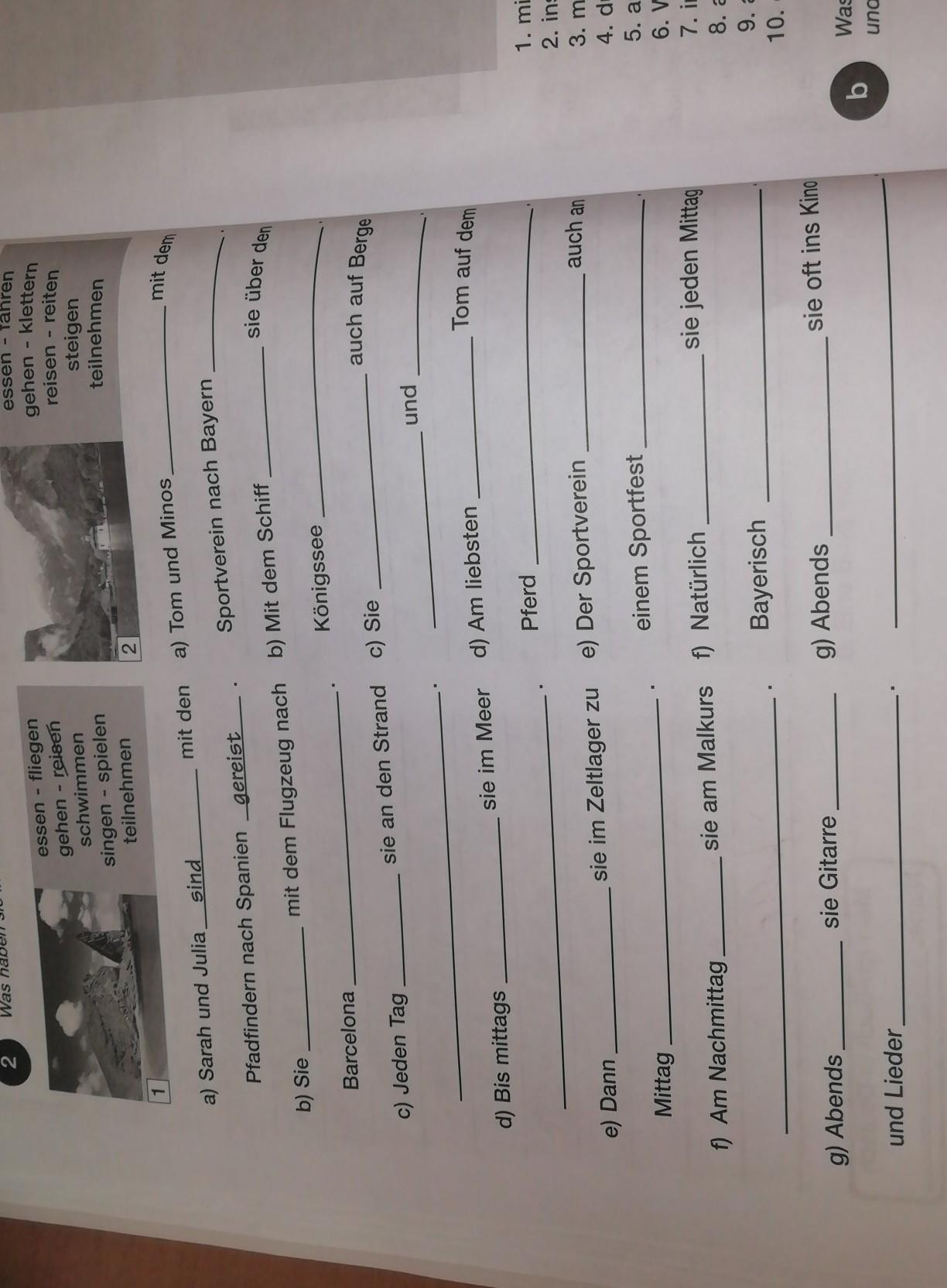 2. a. sind gereist b. sind gefahren c. sind gestiegen, geklettert d. ist geritten e. teilgenommen f. haben gegessen g. sind gegangen