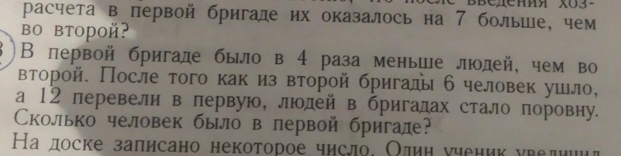 Во второй бригаде было в 4 раза больше, то есть 4х человек.