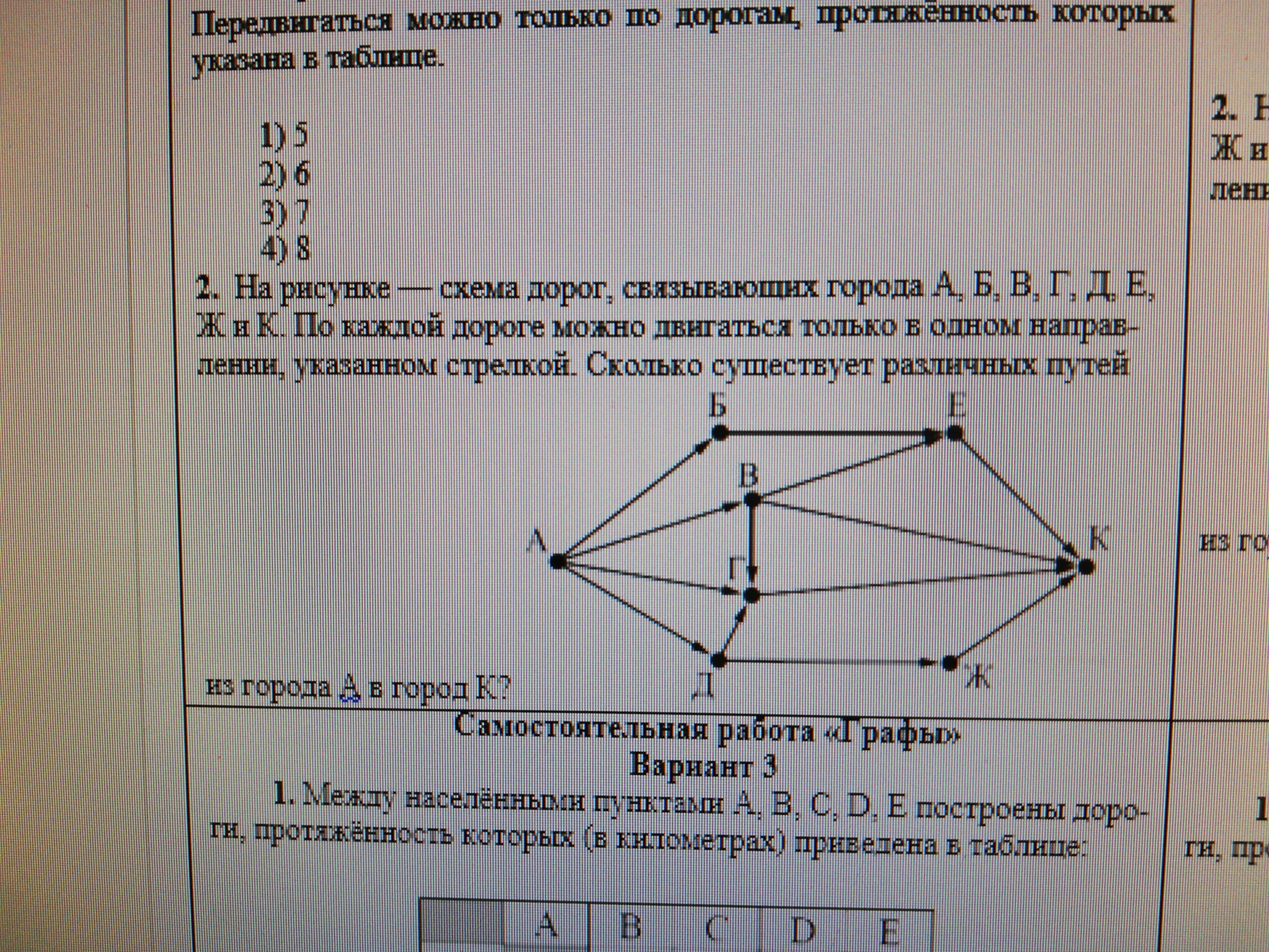 На рисунке схема дорог связывающих города абвгдеж и к по каждой из них можно двигаться только в одном направлении указанном стрелкой сколько существует различных путей из города А в город К