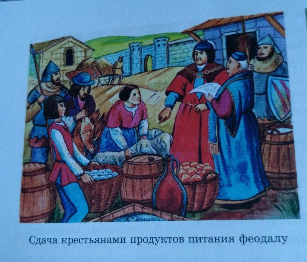 крестьяне рабочие ,которые работают на землях феодалов, получая за это какую-то долю от урожая. на этой картинке феодал разделяет весь урожай между собой и работавшими крестьянами
