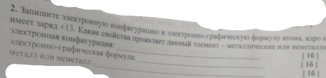 Запишите электронную конфигурацию и электронно-графическую формулу атома, ядро которого имеет заряд +13. Какие свойства проявляет данный элемент - металлические или неметаллические
