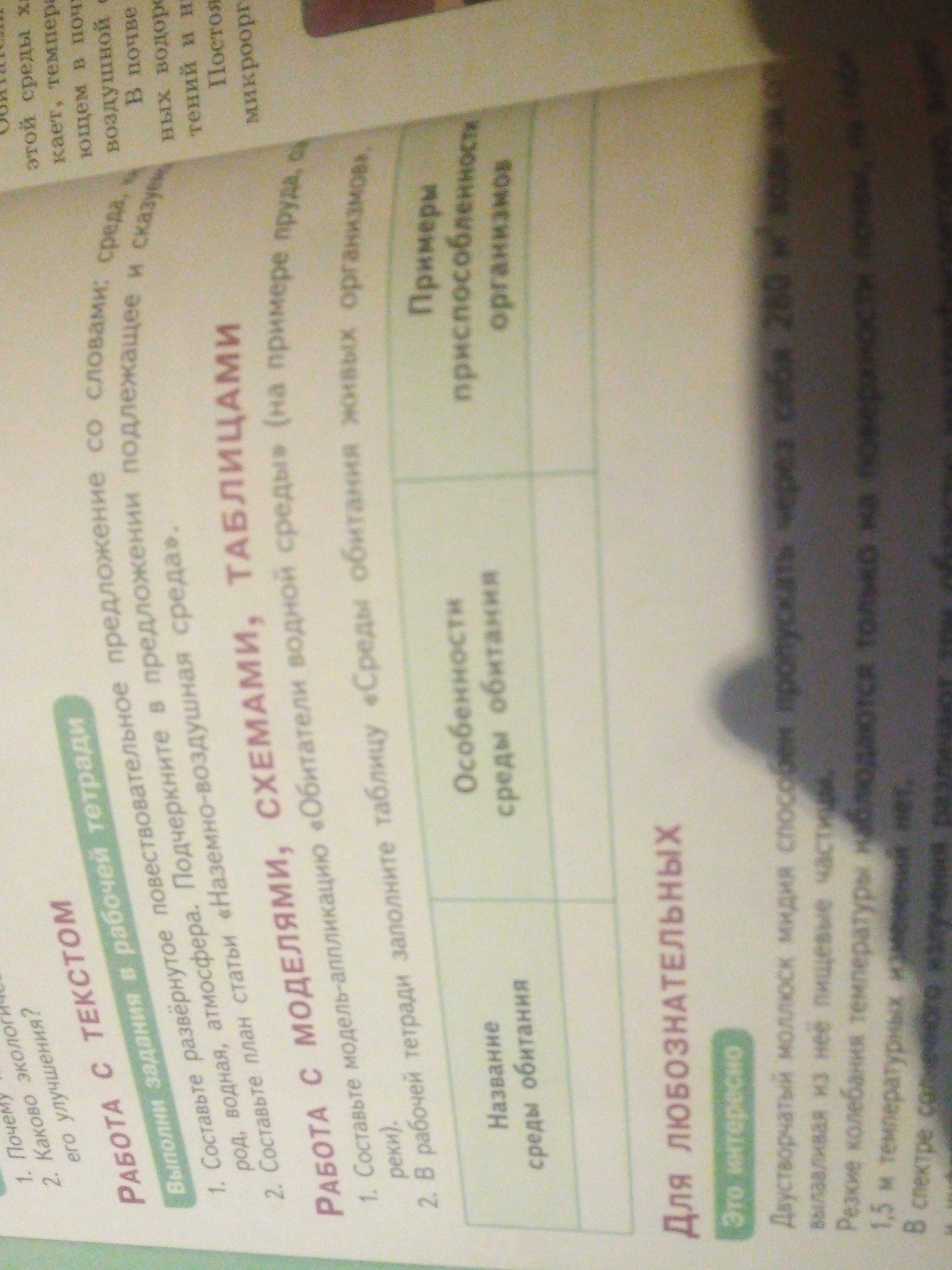 СРОЧНО!!! Помогите пожалуйста заполнить таблицу "Среды обитания живых организмов". Название среды обитания, Особенности среды обитания, Примеры приспособленности организмов.