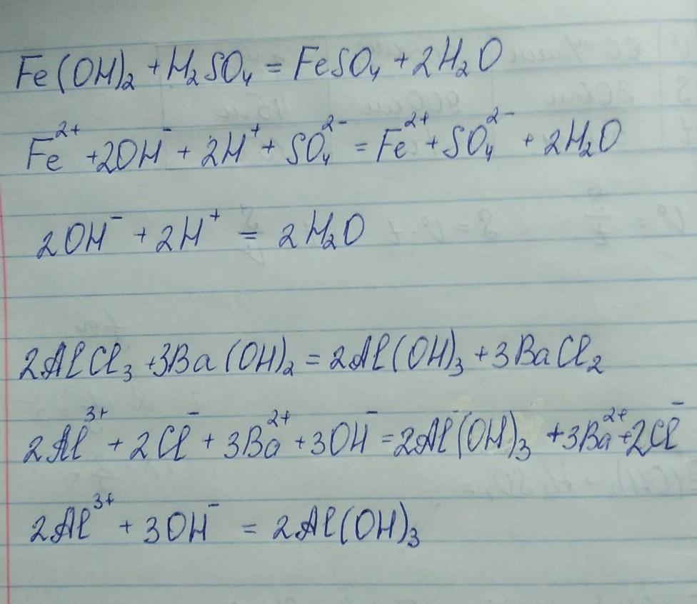 Fe(OH)2+H2SO4=AlCl3+Ba(OH)2