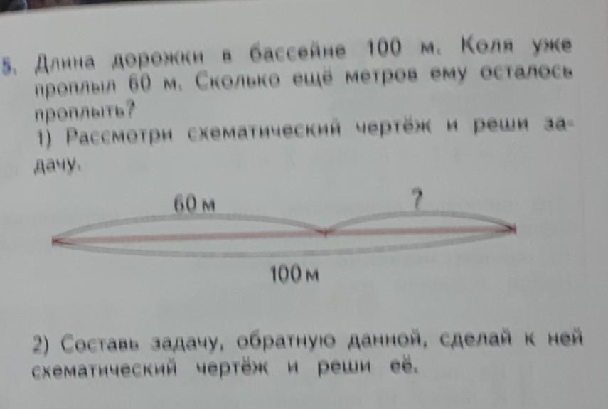 Задача обратная данной: 60+40= 100м(Всего в бассейне)