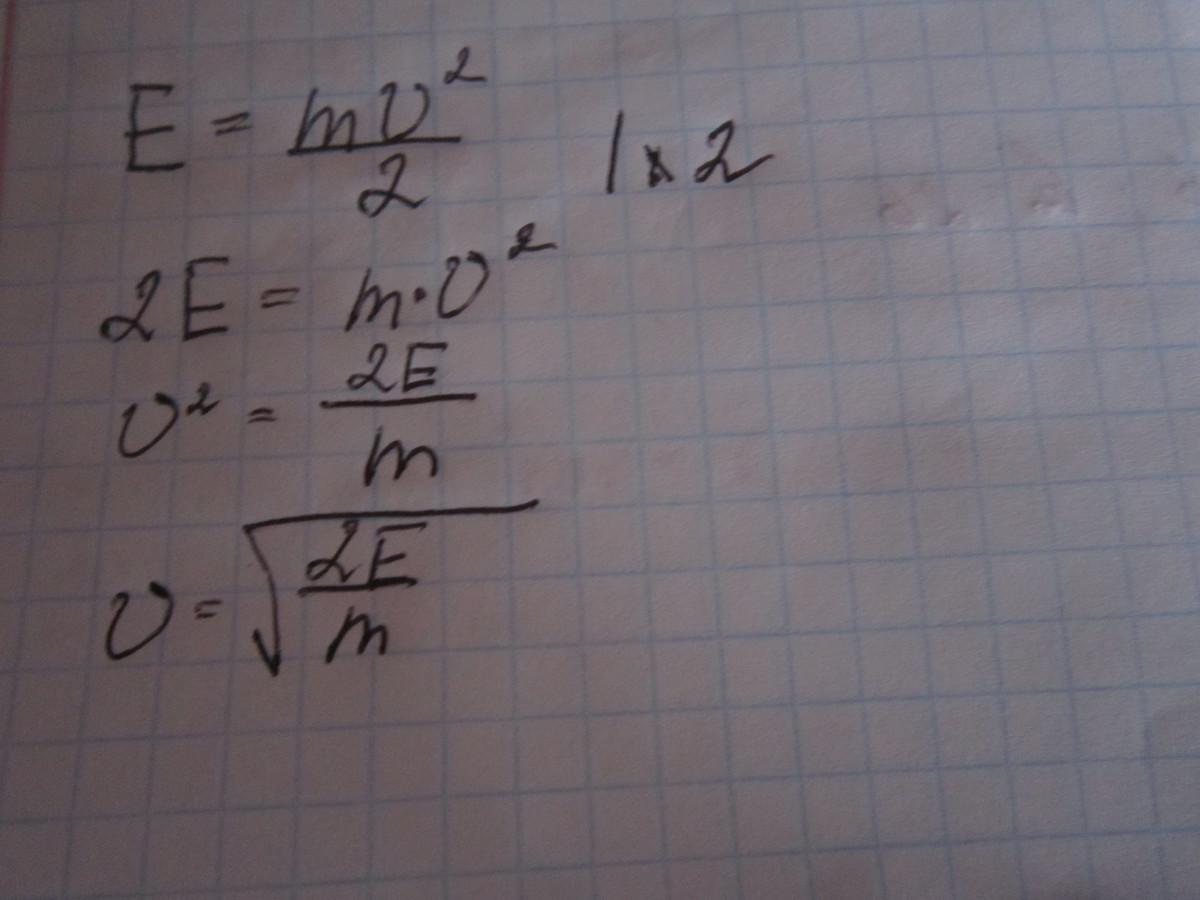 Кинетическая энергия вычисляется по формуле E=mu^2/2. Вычислите из этой формулы скорость u.