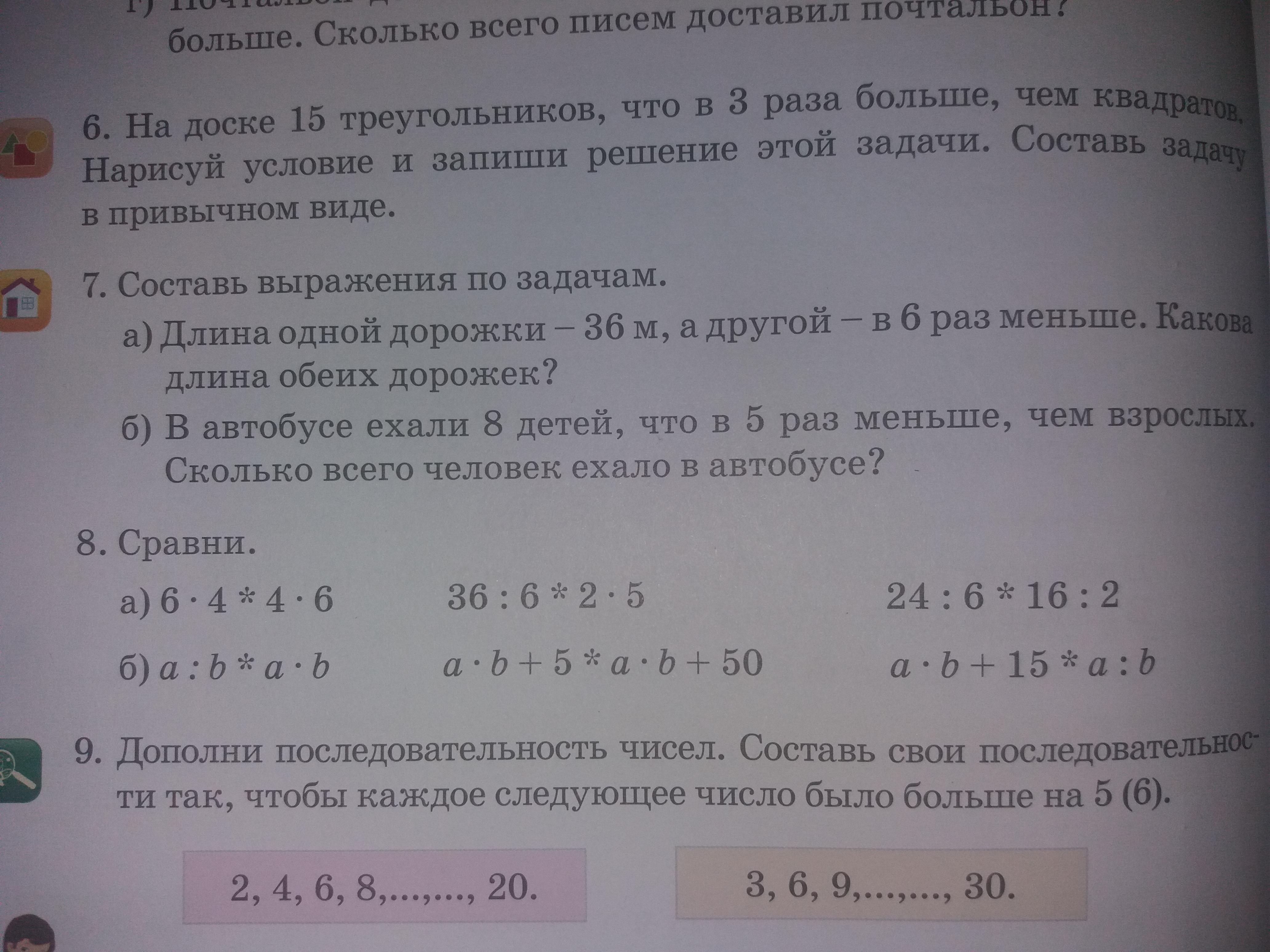 Помогите пожалуйста по математике ном.7 Составь выражение по задачам.