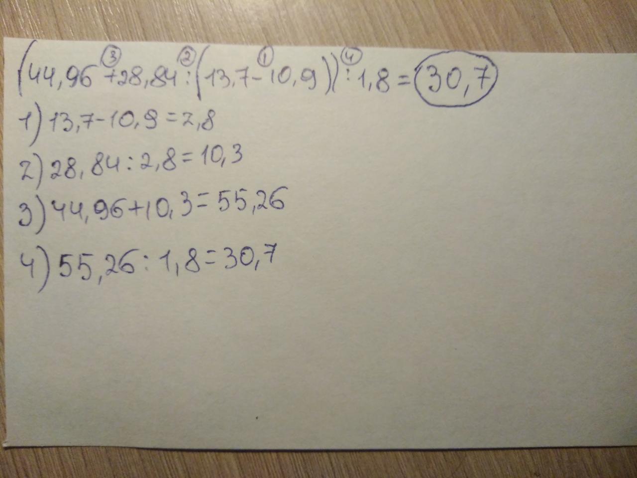 (44,96+28,84:(13,7-10,9)):1,8=(44,96+28,84:2,8):1,8=(44,96+10,3):1,8=55,26:1,8=30,7