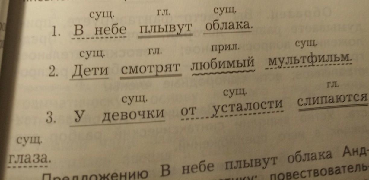 перевір, як Андрій виконав розбір пропозиції по членах. Якщо є помилки, письмово виправ їх.