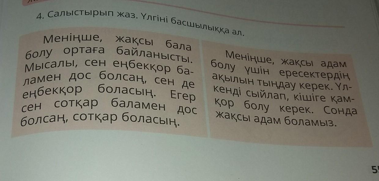 Ответ:оқушы қоршаған ортадан және ата анасынан тәрбие алады. Егер жасөспірім жақсы баламен дос болса ол да досы секілді жақсы бала болып өседі. Ал егер жаман баламен дос болса сол секілді сотқар бала болып өседі. Және де бала үлкендердің айтқан ақылын тыңдап өссе жаман болмайды