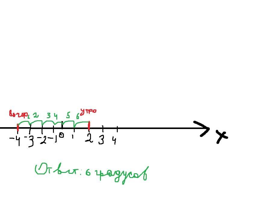 Решите задачу с помощью прямой:Температура воздуха утром была 2°C, а к вечеру она стала равной -4°C.на сколько градусов изменилась температура воздуха за день?