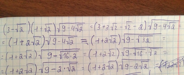(3 - √2)(1 + √2)√9 - 4√2 = (1+ 2√2)√(2√2-1)^2 = (1 + 2√2)( 2√2 - 1) = 8 - 1 = 7