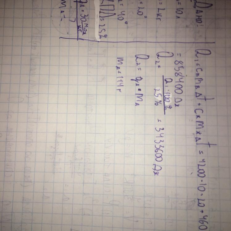 Сколько нужно сжечь антрацита,чтобы нагреть 10л воды в ведре массой 2 кг, от 20 градусов до 40 градусов, КПД 25%