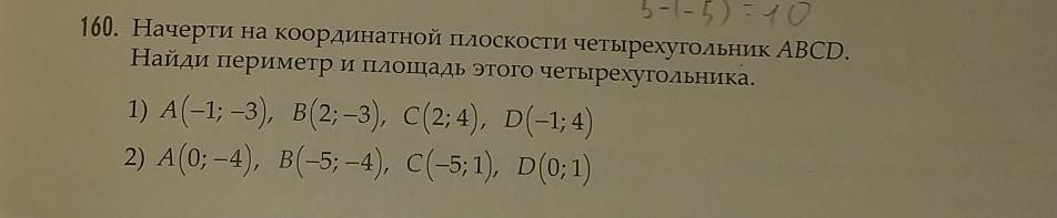 160. Начерти на координатной плоскости четырехугольник ABCD.