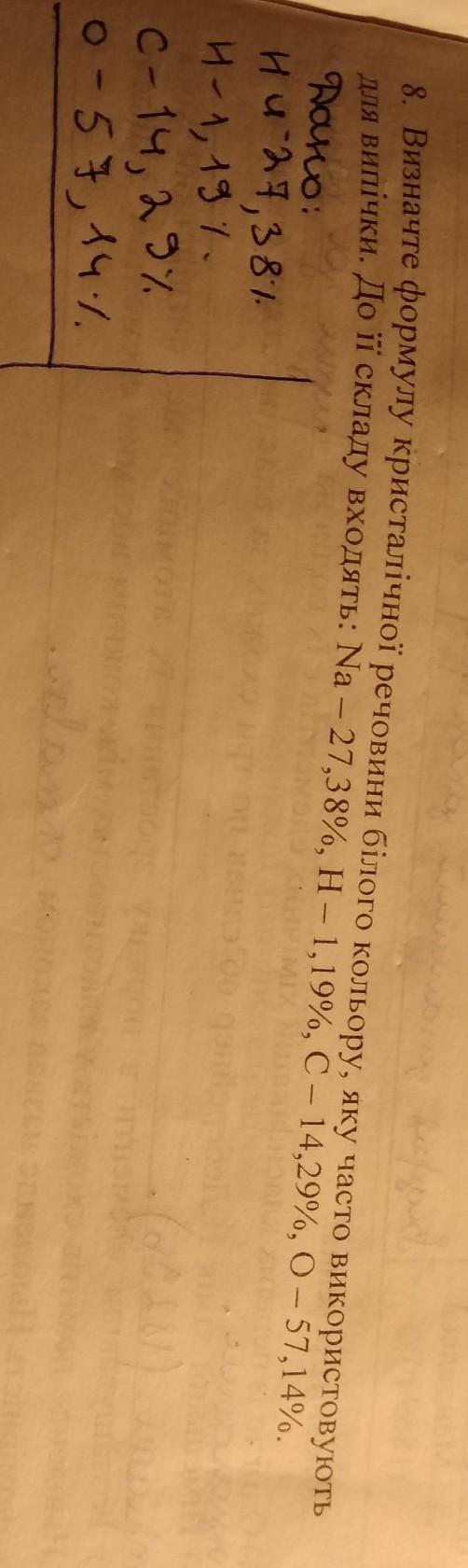 1) Возьмем 100 г данного вещества, значит в этих 100 граммах содержится 27,38 г натрия, 1,19 г гидрогена, 14,29 г карбона и 57,14 г оксигена.